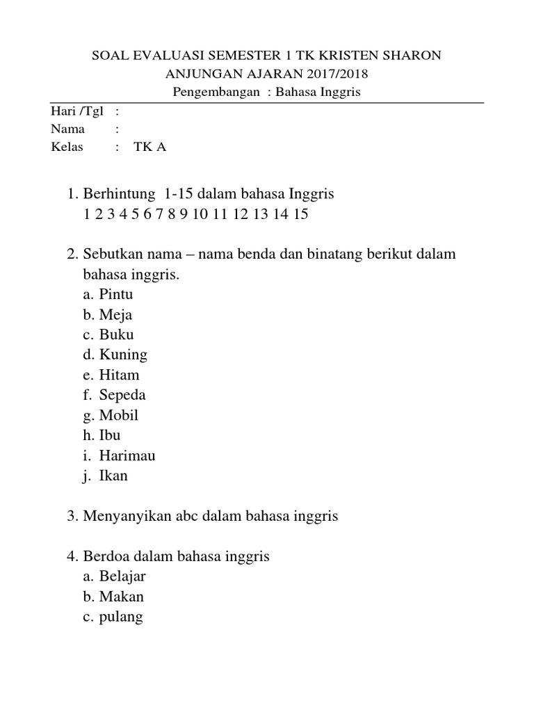 Soal bahasa untuk anak tk. Maybe you would like to learn more about one of these? We did not find results for: Check spelling or type a new query.