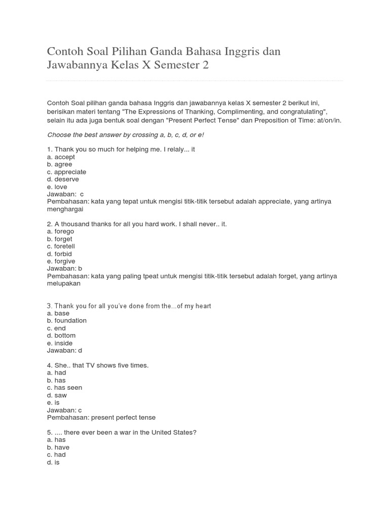 Contoh Soal Pilihan Ganda Congratulation Dan Jawabannya Kelas 9 from i2.wp.com Maybe you would like to learn more about one of these? Check spelling or type a new query. We did not find results for: