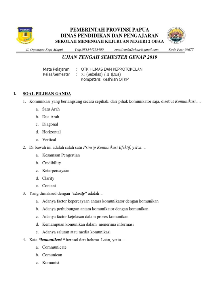 Contoh Soal Administrasi Humas Dan Keprotokolan Smk from imgv2-1-f.scribdassets.com Unsur x dengan nomor atom 12 dan unsur y dengan nomor atom 17 akan membentuk senyawa dengan rumus dan. Soal pilihan ganda dan jawabannya. Soal uas matematika kelas 12 semester 1 pilihan ganda k13 +jawaban. Allah swt pencipta alam semesta beserta seluruh isinya telah ada sebelum makhluknya. Lengkapi hadis di bawah ini. Kurikulum 2013 latihan soal pkn kelas 12 smk soal pkn kelas xii materi sistem pemerintahan soal pkn kelas 12 mid semester 1 soal pkn kelas 12 materi 12 perlindungan dan penegakan hukum di indonesia soal pkn kelas 12 pancasila sebagai ideologi terbuka soal pkn kelas 12 pdf pembahasan. Berikut ini adalah soal dan kunci jawaban uts bahasa indonesia kelas 11 semester 2 kurikulum 2013 beserta jawabannya. Pendidikan kewarganegaraan untuk kelas 12 atau untuk tingkat sma/ma ialah salah satu mata pelajaran yang terdapat di setiap sekolah negri dan.