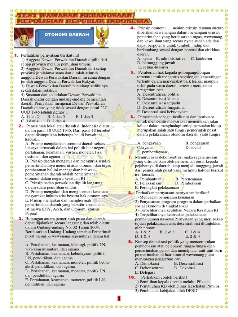 Yuk, latihan soal cpns 2021 online gratis dan pembahasannya berikut! Berikut prediksi soal skd cpns 2021 twk, tiu, tkp lengkap untuk dipelajari dan dikerjakan sebagai latihan menghadapi tes skd cpns. Jumlah soal ini terdiri dari, tes karakteristik pribadi (tkp) 45 soal, tes intelegensi umum (tiu) 35 butir soal dan tes wawasan kebangsaan (twk) . Bocoran soal skd, tiu, tkp cpns 2021, pelajari jika ingin . Segera pelajari dan pahami supaya bisa lulus passing grade. Materi soal skd cpns 2021, terdiri dari tes intelagasi umum (tiu), tes wawasan kebangsaan (twk), tes karakteristik pribadi (tkp). Sedangkan dalam tiu, terdapat tiga jenis tes meliputi sinonim, antonim, kelompok kata, . Skd adalah kepanjangan dari seleksi kompetensi dasar yang meliputi mata ujian tes wawasan kebangsaan (twk), tes intelegensia umum (tiu) dan tes . Adapun materi seleksi kompetensi dasar, di antaranya tes wawasan kebangsaan (twk), tes intelegensia umum (tiu), dan tes karakteristik pribadi ( . Bocoran materi soal dan jawaban tiu yang keluar pada skd cpns 2021. Detikers lagi cari contoh soal tiu cpns 2021 pdf? Selama mengikuti skd cpns 2021, peserta harus menjawab 110 soal yang berisi tentang twk, tiu, dan tkp. Soal materi tiu pada tes skd cpns 2021 sebanyak 35 butir.
